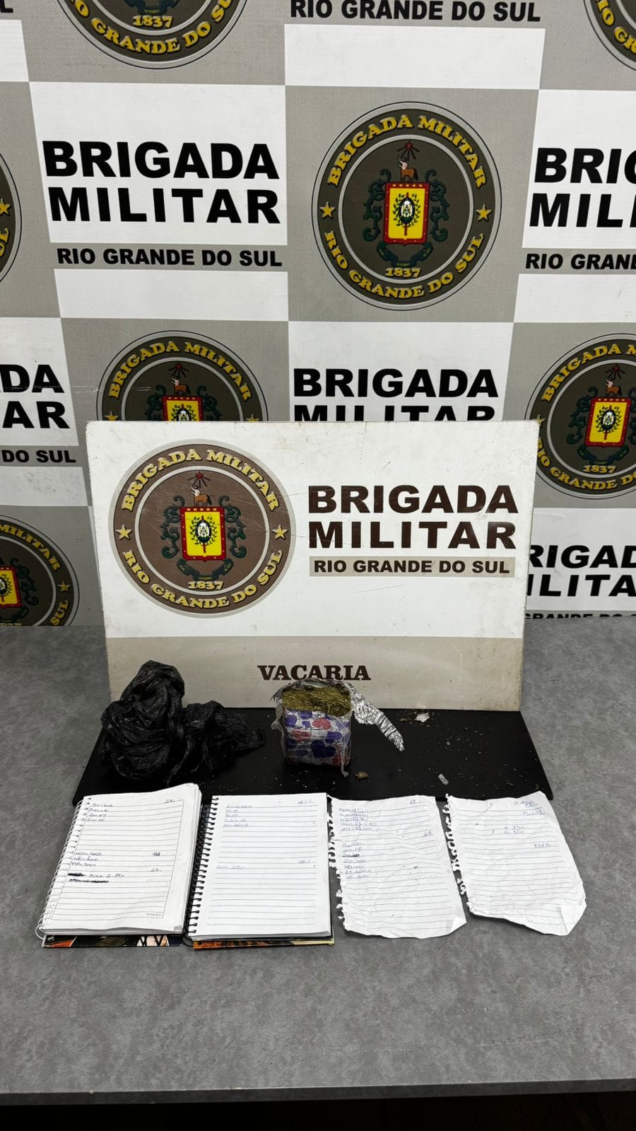 Na tarde de sábado (13/09), a Brigada Militar, por meio do 10º Batalhão de Polícia Militar, realizou uma operação no bairro Kennedy, em Vacaria, que resultou na prisão de uma mulher por tráfico de entorpecentes.Durante o atendimento a uma ocorrência envolvendo medida protetiva, os policiais identificaram indícios de tráfico em uma residência, onde encontraram uma porção de 308g de maconha, cadernos com anotações do comércio de drogas e um aparelho celular.A suspeita foi presa em flagrante e conduzida à Delegacia de Polícia de Pronto Atendimento (DPPA) para os procedimentos legais.A Brigada Militar reforça seu compromisso no combate ao tráfico de drogas e na manutenção da ordem e segurança da comunidade.
