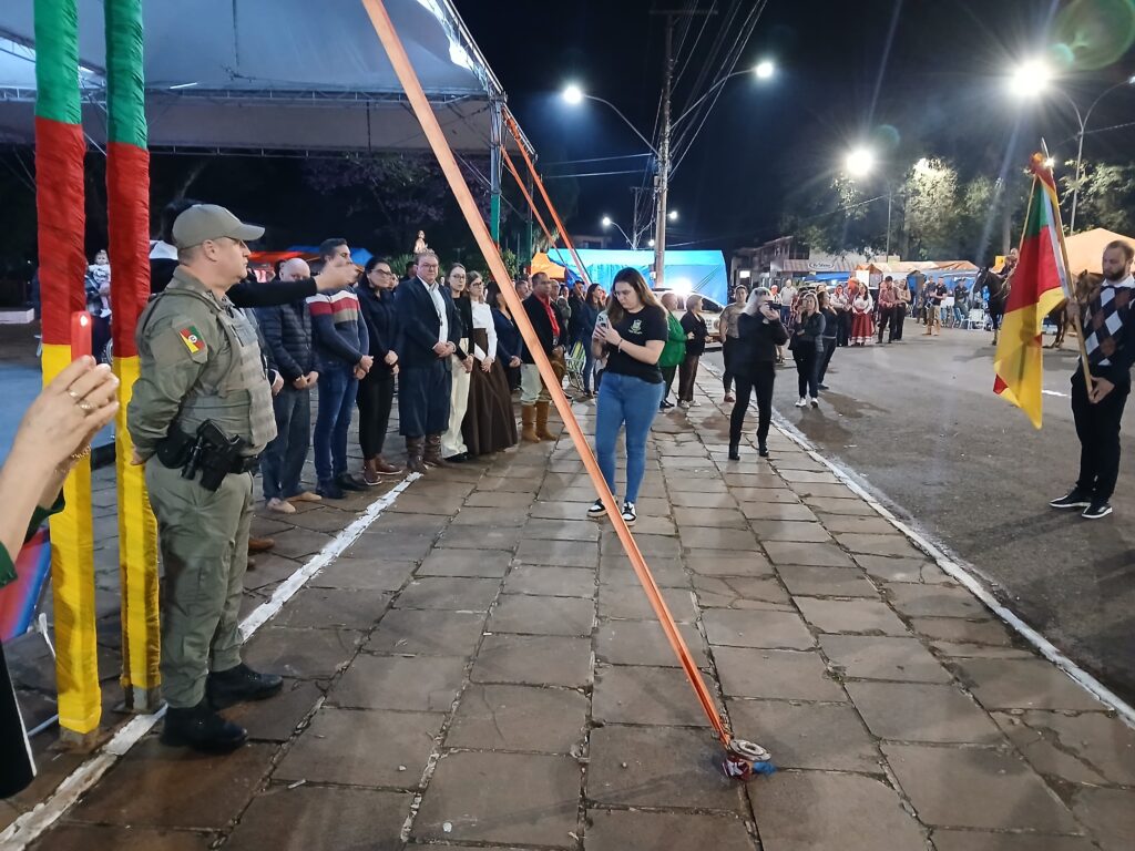 Neste domingo (14/09), a Brigada Militar, por meio do 10º Batalhão de Polícia Militar, esteve presente na chegada da Chama Crioula e na solenidade de abertura da Semana Farroupilha em Ibiaçá.O evento contou com a participação de cavalarianos, autoridades civis e militares, que conduziram a Chama Crioula até em frente à Paróquia Nossa Senhora Consoladora de Ibiaçá.A Brigada Militar reforçou a segurança durante toda a programação, garantindo tranquilidade aos participantes e ao público presente, valorizando a tradição e cultura gaúcha.