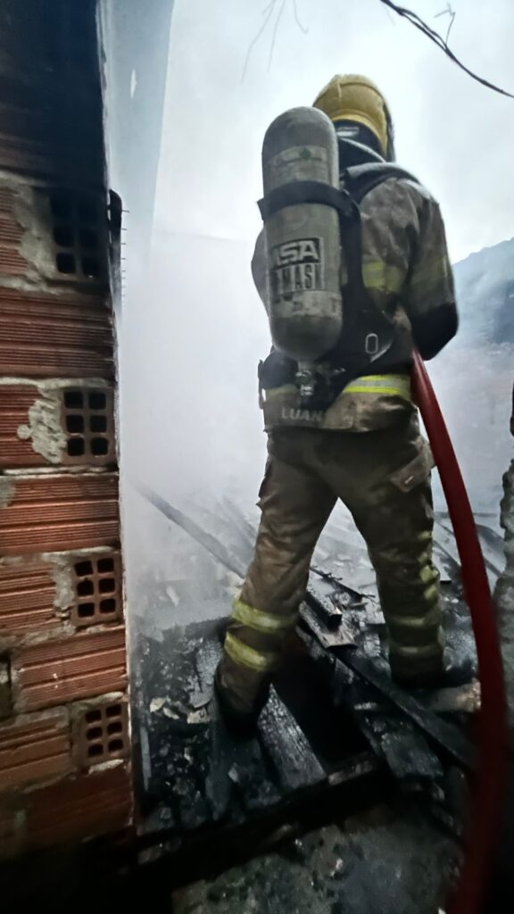 Uma residência foi completamente destruída por um incêndio na manhã desta segunda-feira (06), no bairro Jardim dos Pampas, em Vacaria. O fogo, que começou por volta das 6h, consumiu rapidamente a casa de aproximadamente 20m², localizada nos fundos de um terreno na Rua Joaquin Cairon.Apesar da rápida destruição do imóvel, a notícia mais importante é que não houve feridos. O casal que morava na residência conseguiu sair a tempo e passa bem. Eles não souberam informar o que poderia ter causado o início das chamas.A ação rápida da guarnição do Corpo de Bombeiros foi fundamental para evitar uma tragédia ainda maior. Os bombeiros conseguiram controlar o fogo e resguardar três casas adjacentes, impedindo que as chamas se alastrassem pela vizinhança. As causas do incêndio serão investigadas.