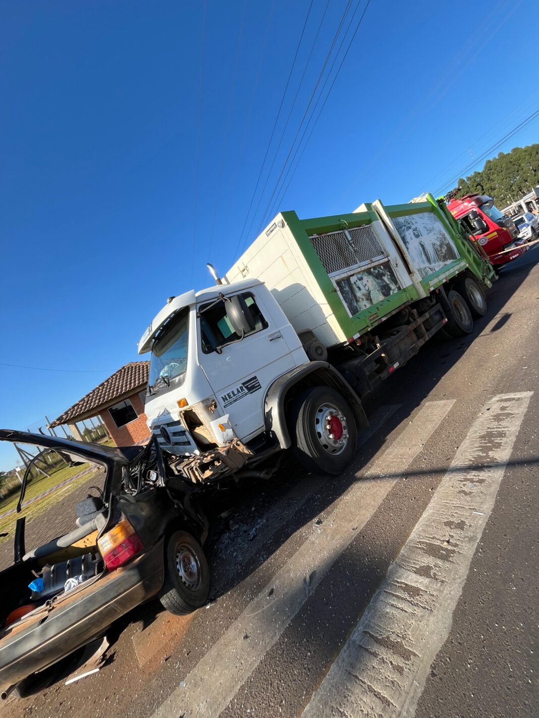 Na manhã desta quarta-feira, um grave acidente de trânsito foi registrado no cruzamento da Rua Campo Sales com a Presidente Kennedy, nas proximidades do presídio, no bairro Gasparetto, em Vacaria. A ocorrência envolveu um Fiat Uno que levava trabalhadores para a colheita da maçã e um caminhão da coleta de lixo da cidade.Quatro pessoas que estavam no Uno ficaram encarceradas e precisaram ser retiradas das ferragens pela equipe do corpo de bombeiros . As vítimas – uma mulher e três homens, ainda sem identificação – foram encaminhadas ao hospital. O Serviço de Atendimento Móvel de Urgência (SAMU) realizou o transporte de três feridos, enquanto a quarta vítima foi conduzida pela ambulância de apoio do corpo de bombeiros.De acordo com as primeiras informações, o condutor do Uno estava consciente, com suspeita de fraturas, assim como a caroneira da frente, também consciente e com possíveis fraturas. Já os dois ocupantes do banco traseiro foram socorridos em estado grave. Posteriormente, o hospital confirmou o óbito de um dos caroneiros que estava na parte de trás do veículo.Brigada Militar e Guarda Municipal também atenderam a ocorrência e auxiliaram no isolamento da área e organização do trânsito. O acionamento dos serviços de emergência ocorreu por volta das 6h45. As causas do acidente ainda serão apuradas.