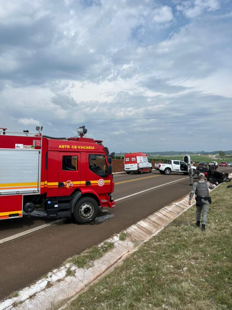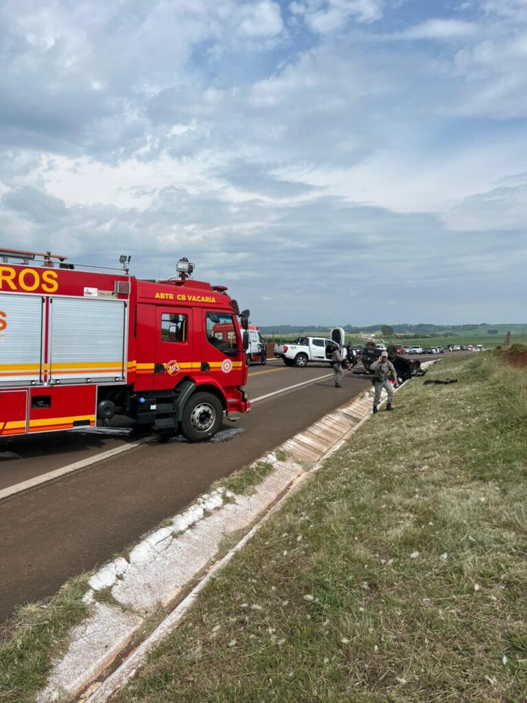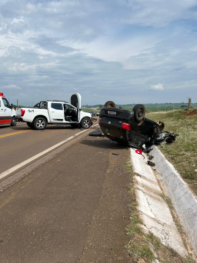 Um grave sinistro de trânsito do tipo carro x carro ocorreu na manhã deste sábado (07/02/2026), na BR-285, próximo ao km 142, no trevo que dá acesso a Esmeralda, ainda no perímetro de Vacaria. O acidente envolveu um Volkswagen Gol e uma Nissan Frontier, com impacto que resultou no capotamento de um dos veículos.O condutor do Gol ficou preso às ferragens e foi socorrido em estado grave pelo Corpo de Bombeiros de Vacaria , com múltiplas fraturas, sendo encaminhado ao Hospital de Vacaria. Uma das ocupantes da camionete foi atendida no local pelo SAMU e também levada ao hospital. O condutor da Nissan Frontier nada sofreu e permaneceu no local para os procedimentos.O acionamento das equipes ocorreu às 8h30. A Brigada Militar permaneceu no local isolando a área até a chegada da Polícia Rodoviária Federal (PRF), que estava em ocorrência em São Marcos. Até o momento da nossa saída, a pista estava bloqueada, com tentativa de liberação em meia pista coordenada pela BM.A PRF deve divulgar boletim oficial com mais detalhes sobre as circunstâncias do acidente. Motoristas devem redobrar a atenção na BR-285, especialmente em trevos e acessos.